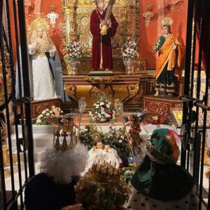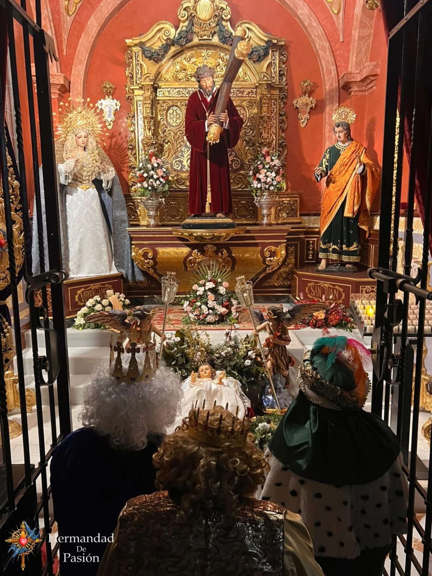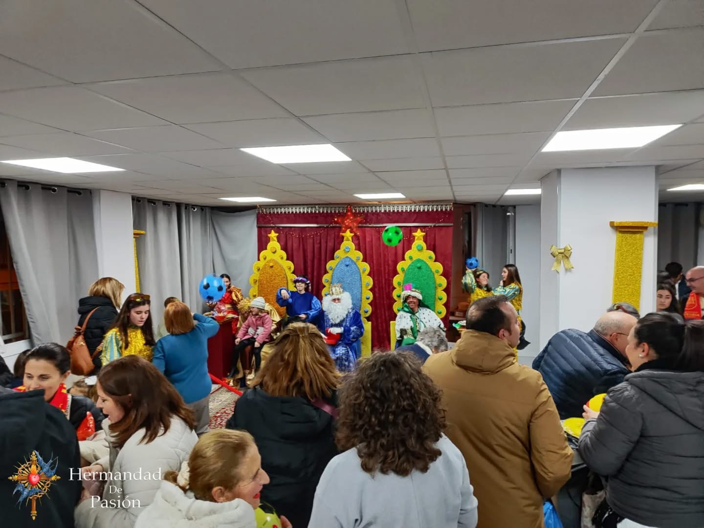 Ya por la tarde, Sus Majestades estuvieron en nuestra Casa Hermandad, donde repartieron regalos y juguetes, recogieron las cartas de los niños del barrio del Alcázar Viejo y compartieron un agradable momento ofreciendo roscón de Reyes y chocolate a todos los asistentes.